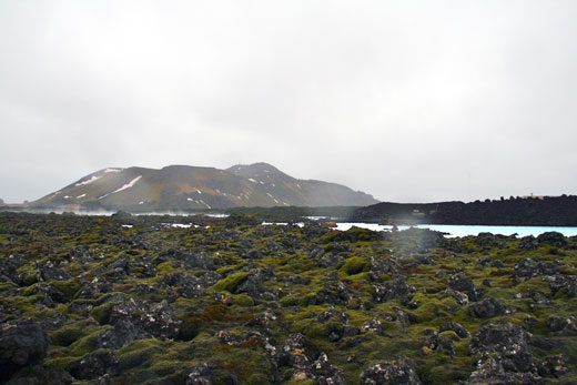 It was still dark when we arrived at the Blue Lagoon Clinic Hotel around 7:30 on the morning after about a 25-minute drive from the airport. We didn't see the lagoon, all we saw was the black lava field surrounding us, and we didn't really know what to expect. The hotel staff knew we were coming early, and while our room wasn't ready at 7:30, we were able to eat breakfast the the Blue Laguun Clinic Hotel breakfast buffet and relax a bit after our long flight before getting our room around 9AM. The typical check-in time for them is at 2PM, and I was impressed we were able to get the room so early.The above picture is taken from the veranda of our hotel room first thing on the morning - all you can see is the lava field covered in moss, and darkness. The picture below is Kris standing on the veranda thirty minutes later when the first rays of sunlight started coming out. There was something truly unique about the surrounding 750 year old lava field.. very serene.