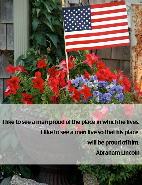 I like to see a man proud of the place in which he lives.I like to see a man live so that his place will be proud of him.Abraham LincolnAre you making your place proud..?