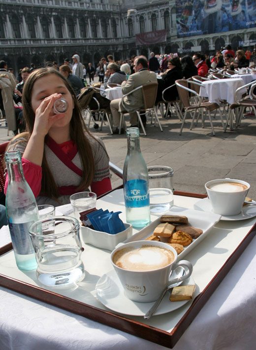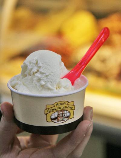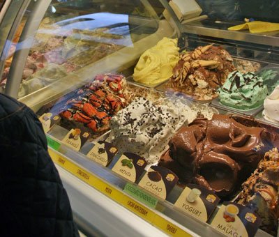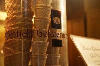 Every street corner has a small gelateria, an ice cream shop, offering several different flavors of creamy ice cream or refreshing sorbets. Most gelaterias offer gelatos in these traditional flavors: vanilla, chocolate, cream custard (or milk) and various nuts like hazelnut and pistachio, and fruits and berry flavors like lemon, cherry, strawberry, raspberry, peach, banana and pine apple and flavors from Italian desserts and drinks, like tiramisu, zabajone, stracciatella.. The list really goes on and on, and my daughter said there is even a gelateria where you can find over 50 different gelato flavors - but we are not visiting there - like we need more choices here!