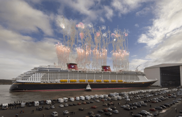 The newest Disney Cruise Line ship, Disney Fantasy, floated out of the enclosed building dock at the Meyer Werft shipyard in Germany last week as fireworks filled the sky. Disney Fantasy will starts its voyage towards New York city, where it will be Christened on March 1st and on March 31, 2012 the Disney Fantasy will start its maiden voyage.The Disney Fantasy is a sister ship to Disney Dream, and will feature many of the same new features Disney Dream has, for example the Aqua Duck water slide and magical portholes in the inner stateroom. In addition the Disney Fantasy will offer two new Broadway-style musical spectaculars, a dining experience at Animator's Palate where guests' own drawings magically come to life, an interactive adventure quest starring the Muppets, and a water play area called AquaLab, and much more.