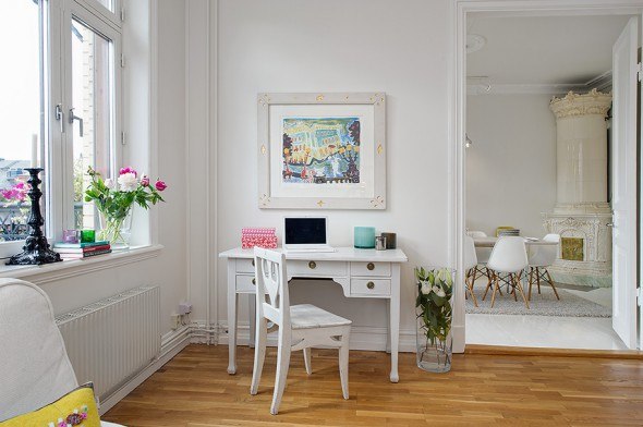 When we first started planning our move to Sweden, this is kind of how I dreamed of living... In a small open apartment in an old building in the city, decorated in all white, with a few pops of color. What I can't believe now is that we live in a house 2,5 times larger than this gorgeous apartment, and we are slowly making it our own, and I am able to try to create our home this type of sleek all-white Scandinavian heaven. I'm hoping our home will be ready for some more photos sometime soon, can't wait to share and hear what you think.