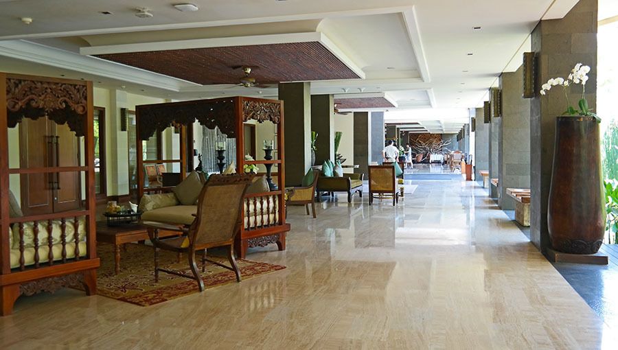 It feels like a breeze of luxury sweeps you in the minute you step into the welcoming reception area of the Starwood Preferred Guest property, The St. Regis Bali Resort in Nusa Dua in Bali, Indonesia. We are greeted with a welcoming smile and a cold welcome drink - what a treat in the tropical heat of Bali. We had already been touring Bali the entire day, and were tired when we arrived, but you can't help but relax immediately after settling at St. Regis. For those who arrive to St. Regis Bali from the Ngurah Rai International Airport in Denpasar, it is only a thirty-minute-drive, and you will have a driver waiting for you at the airport.
