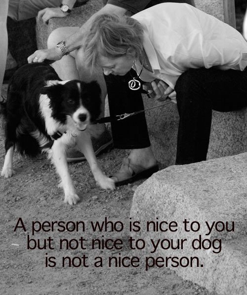 I truly believe this. You know there are people who seem so nice; maybe they are nice to you because they want something from you. But then you see how they treat your dog, or your child, your spouse or even the waitress in a restaurant and you realize - that person isn't really nice at all. I think there is a lot to say about people when you see how they treat dogs, or anyone who they are not trying to impress. And the people who treat dogs or the under dogs with the same respect than others.. well, those are the truly nice people. Are you a nice person? Or just trying to impress?