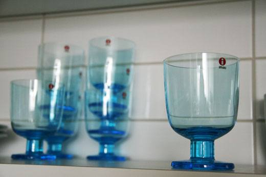 Last month I admired the Matti Klenell's Lempi glasses for Iittala designed by Matti Klenell, and last week when visiting an Iittala store in Finland my husband spotted the same glasses on the shelf."Hey, look what I found, kind of cool glasses. Do you like them? You wanna get some..?"Um, yes!I love blue glass, and my husband knows it, and I probably would have saved money and picked the cheaper clear ones which are factory manufactured, but he insisted buying us the blue ones that we liked more. The colored Lempi glasses are mouth blown and truly amazing quality. The price of the 2 pack of clear Lempi glasses is $32 and two pack price for the blue Lempi glasses is $62.50. Luckily they were a little cheaper at the Iittala store in Finland (around 53 dollars).