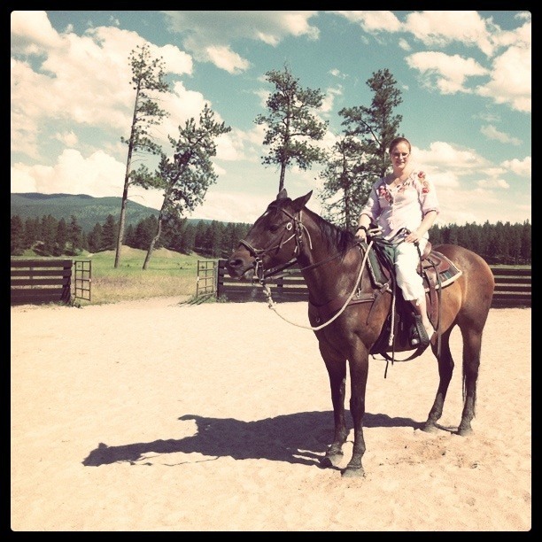 Yes, that's me, horseback riding in Montana this summer, directly to riding from airport.