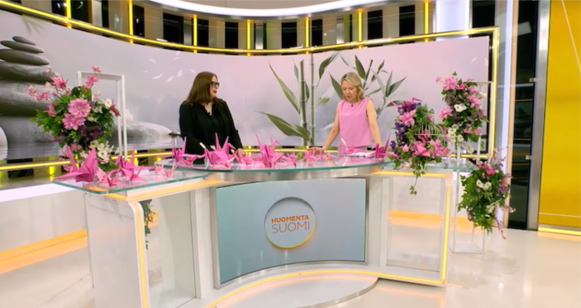 Laura, together with Keru Salumets and Essi Koski-Lammi created the decor backstage and carried it into the studio just minutes away from the live segment.