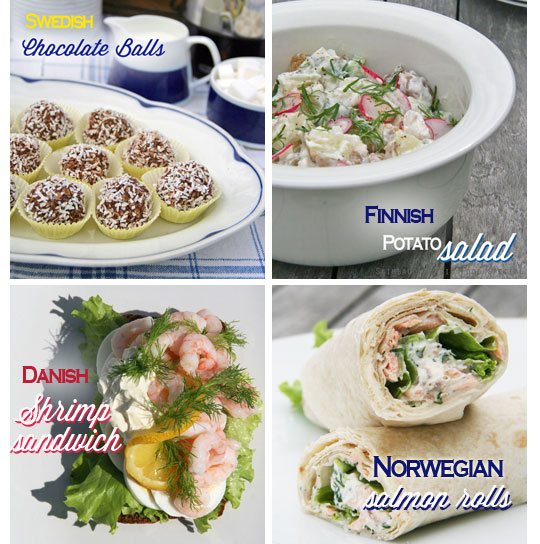 Create a menu that you can make ahead of the time - or whip up quickly by the BBQ grill. Enlist kids to help and make it a family effort. My daughter's specialty is Swedish chocolate balls, and my 9-year old son knows how to make Finnish summer berry pie and loves it with blueberries.The night before the party I boil extra potatoes and throw a huge salmon file on the grill and enjoy the night with my family (this makes a great party dinner menu too - if you are having a dinner party). The next day I make a potato salad with radishes, and salmon wraps (recipe coming this summer) for the party. Easy, since the cooking was already done. And while Scandinavian summers are more than pickeled herring, typically there is some sort of seafood in Scandinavian parties. Try the easy Danish Smorrebrod, an open shrimp sandwich, make it smaller as an appetizer, or larger for lunch menus. Taste of Scandinavia - and super easy.