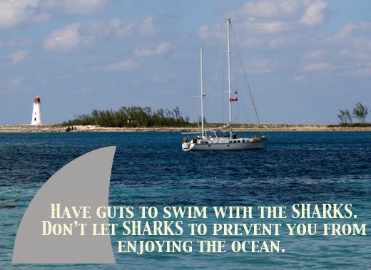 Have guts to swim with the sharks. Don't let sharks to prevent you from enjoying the ocean. Do you sometimes feel you want to swim in the ocean of life, but there are so many "sharks" that make you scared and prevent you from living life to the fullest? Have guts to "swim with the sharks". Take risks. Be bold. Be brave.Make a plan. Think what would be the worst case scenario, and why you are so afraid of that happening. Thankfully many of the things we are scared in our lives are far less scary than literally being eaten by a shark. We are often held back by things like worrying what other people think of us, or failing doing something in the front of others. I don't know about you, but if I see someone failing in the front of me, I don't think bad about that person; I give the person credit for trying and will try to help that person to make it the next time! I have learned more in life when I have been "bitten" than when I haven't even tried. I fail all the time. I make mistakes, bad things happen to me, things don't go the way I want. I have just chosen to live life to the fullest, no matter what. I have chosen to take failure as an opportunity for something new, I have taken every single lemon life has given me and made it into lemonade, and oh boy life can be sweet when you just decide so. Don't let the "sharks" prevent you from enjoying what the beautiful ocean of life has to offer, or your life will go by you just standing on the shore. And when life bites you, bite it back.