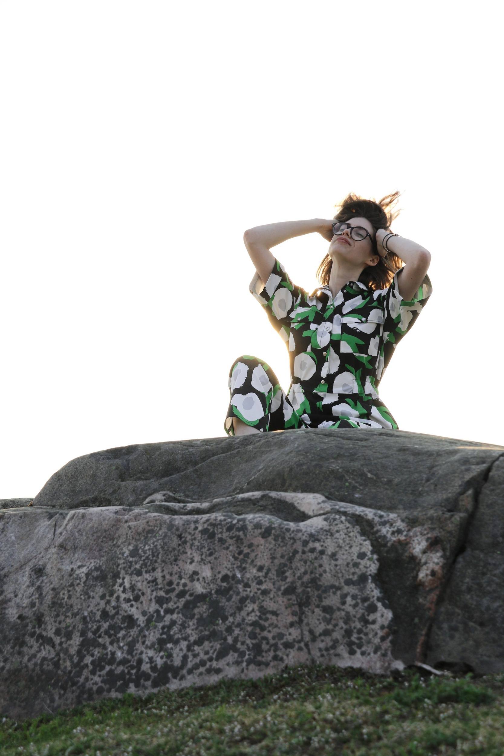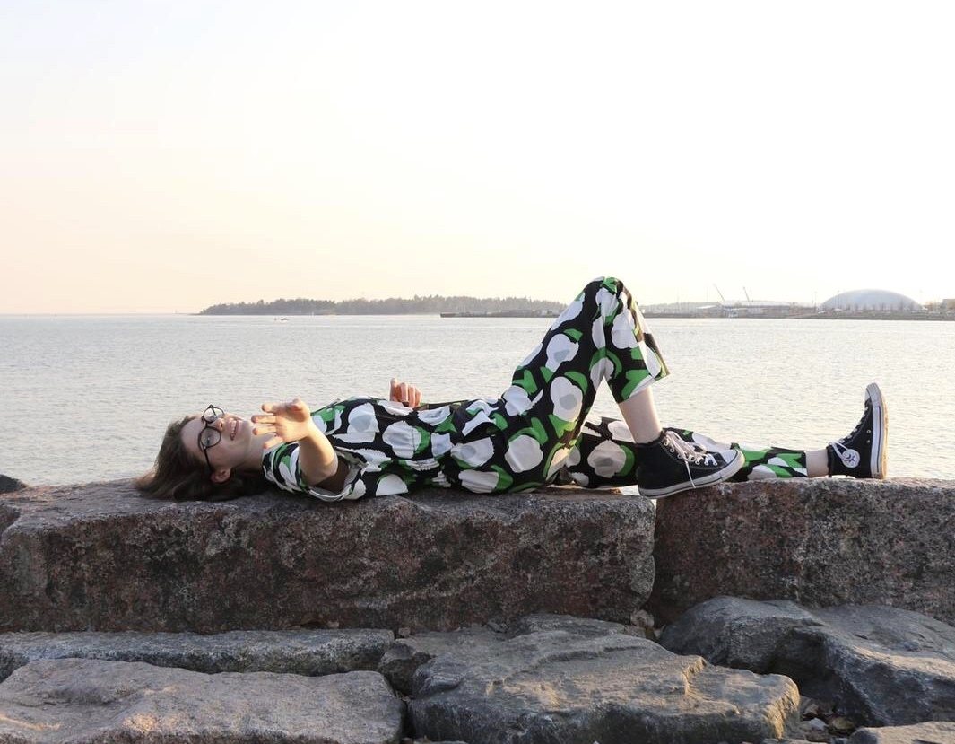 Helsinki based photographer Omar El Mrabt had a fun spring photoshoot with Isabella in her Marimekko jumpsuit, enjoying a nice spring afternoon by the shore.
