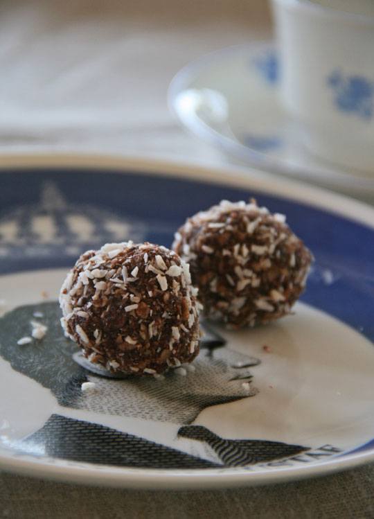 The Swedish chocolate balls, "chokladbollar", are a popular for kids' parties, because they are easy to make, and kids love making them because it's fun to roll the good smelling dough into balls and then roll it in coconut flakes. But don't be fooled and just think these as kids' treat, but something you will love as well. The combination of coffee, chocolate and coconut gives these balls their unique taste, and oats give the nice chewy texture. Perfect for fika, for coffee pause with friends. Best: this is a no bake recipe, making it also a great recipe for lake house, summer cottage or other vacation homes where you may not have as large kitchen as at home.