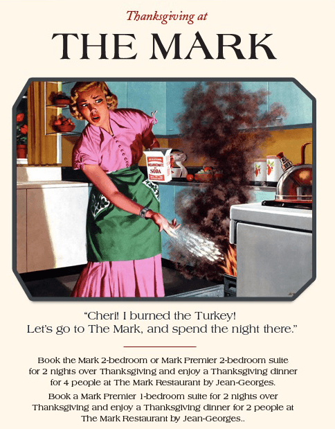 Keen to avoid a thanksgiving kitchen nightmare? Why not book a suite at The Mark and enjoy a festive dinner at The Mark Restaurant by Jean Georges Vongerichten. This exclusive offer will take care of your sumptuous accommodation and thanksgiving feast, allowing you to spend the holiday enjoying New York's premier museums, shops and the splendor of Central Park. The Mark not only surrounds you in luxury and style, it places you at the epicenter of Manhattan's social and cultural riches.
