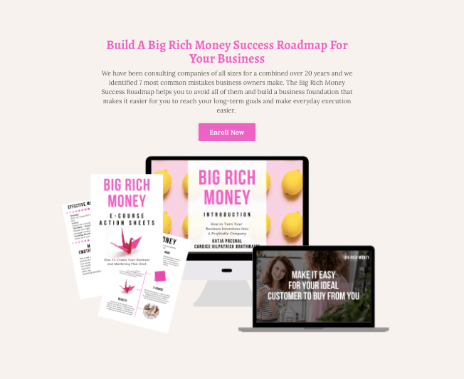 While everyone has different business needs, Kajabi is one tool we LOVE that allows us to create and market our BIG RICH MONEY e-course, multiple landing pages, automated pipelines, funnels, newsletters, and truly simplify our process and grow like never before.
